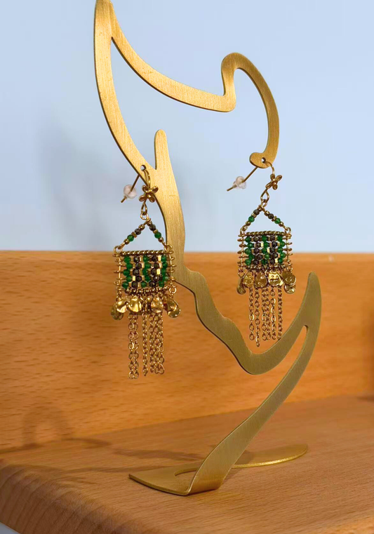 Beaded Rainbow Gemstone Medium Hoop Earrings