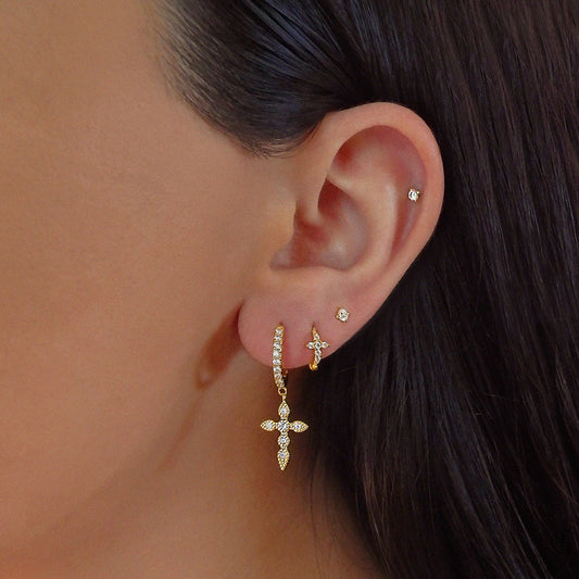 Diamond Cross Hoop Earrings