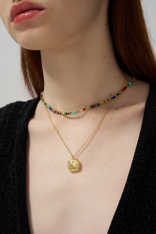 Mythical Embossed Green Diamond Gold Coin Necklace