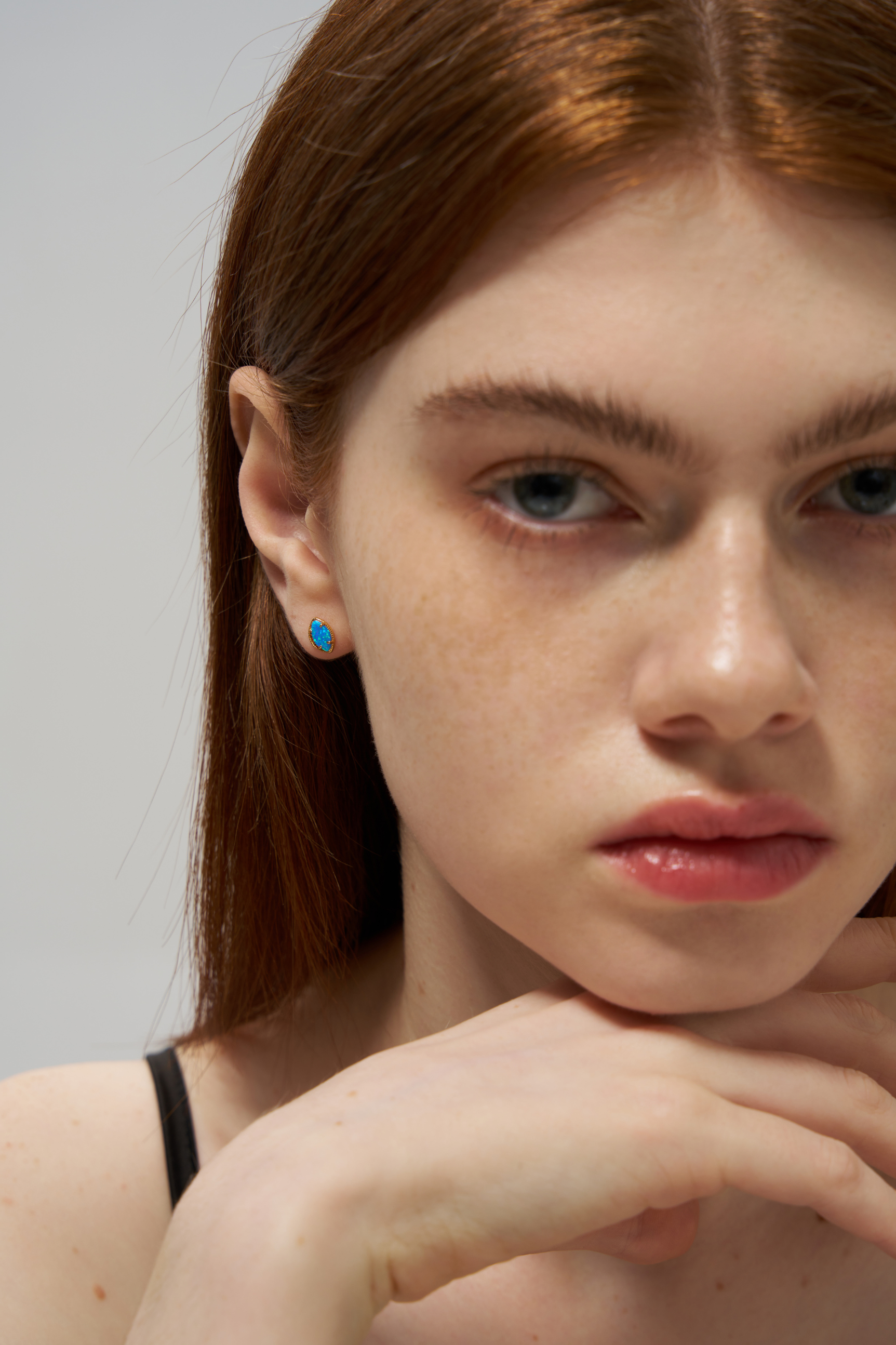 These striking stud earrings feature marquise-cut blue opals framed in delicately filigreed gold settings. The elongated shape and vibrant play of colour evoke the elegance of vintage design with a bold, modern twist.