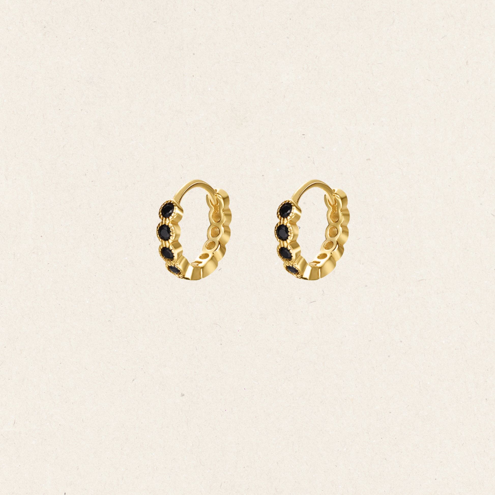 Tiny huggie earrings are crafted from obsidian, with a smooth, polished surface that adds a touch of sophistication to any look.