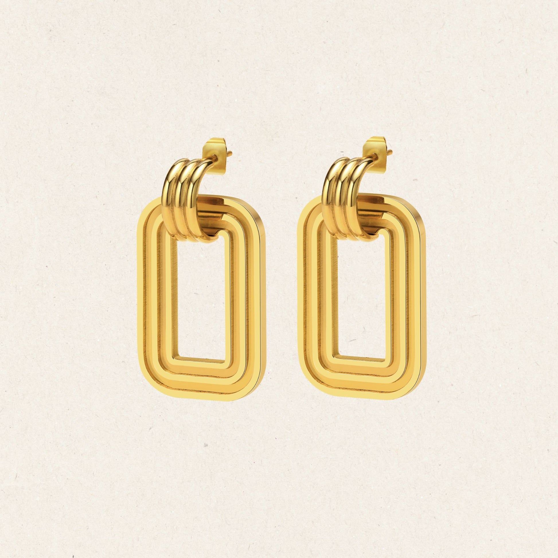 Three nested rectangular frames create a sense of motion within structure. The Frame Flow Earrings capture the rhythm of repetition and the elegance of geometry.