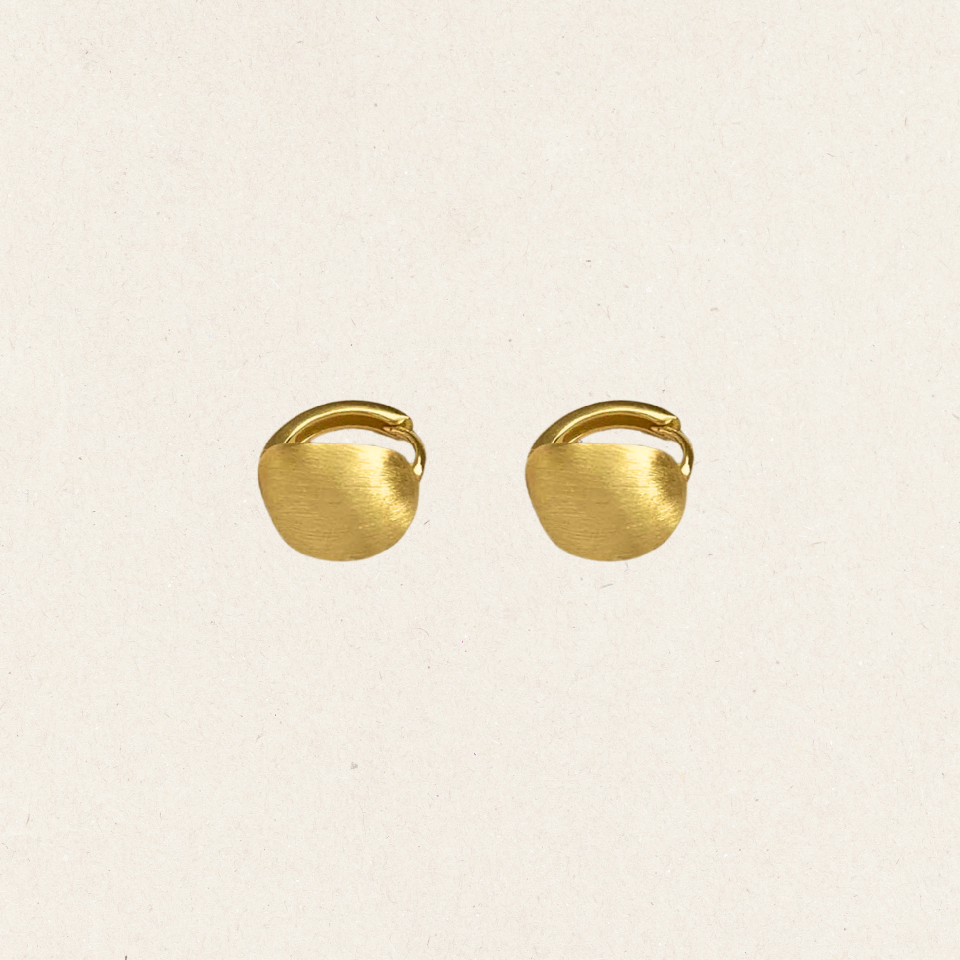 Sculptural gold-finished hoops feature a bold, rounded silhouette with a fluted texture that subtly catches the light. Their minimalist yet striking design makes them perfect for both everyday wear and special occasions.
