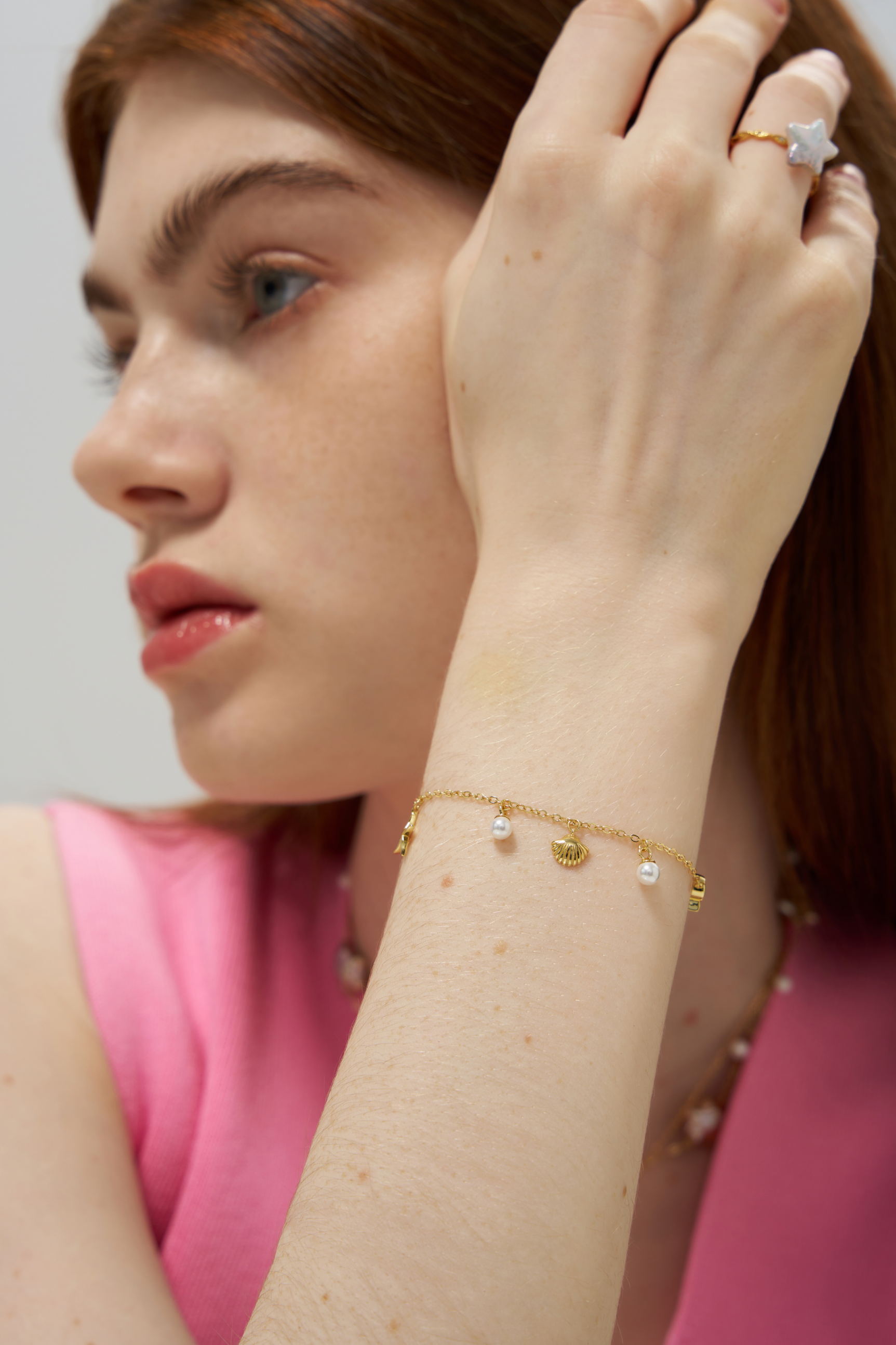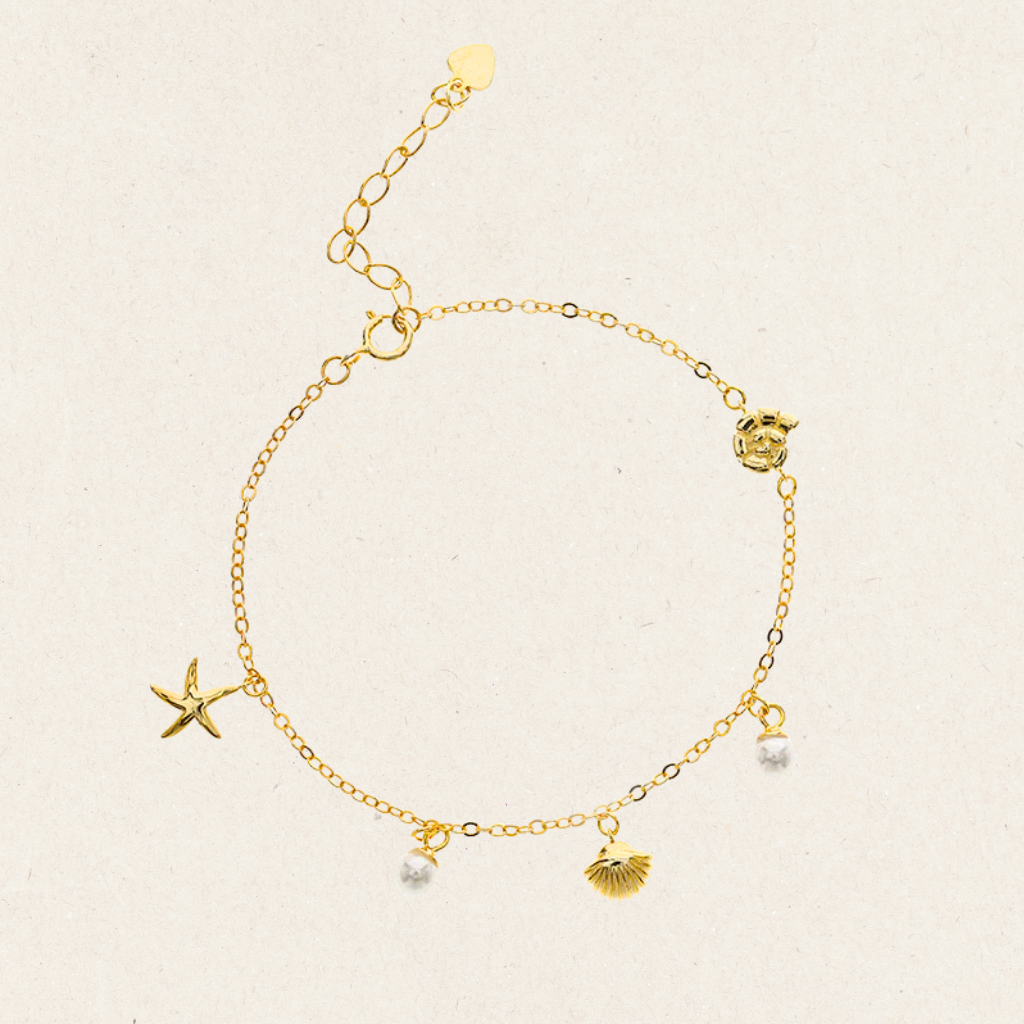 Adorned with beautiful starfish, shells, and pearls, this bracelet will add a touch of beach elegance to any outfit. Perfect for beach lovers and anyone who wants to embrace the calming and magical energy of the sea.