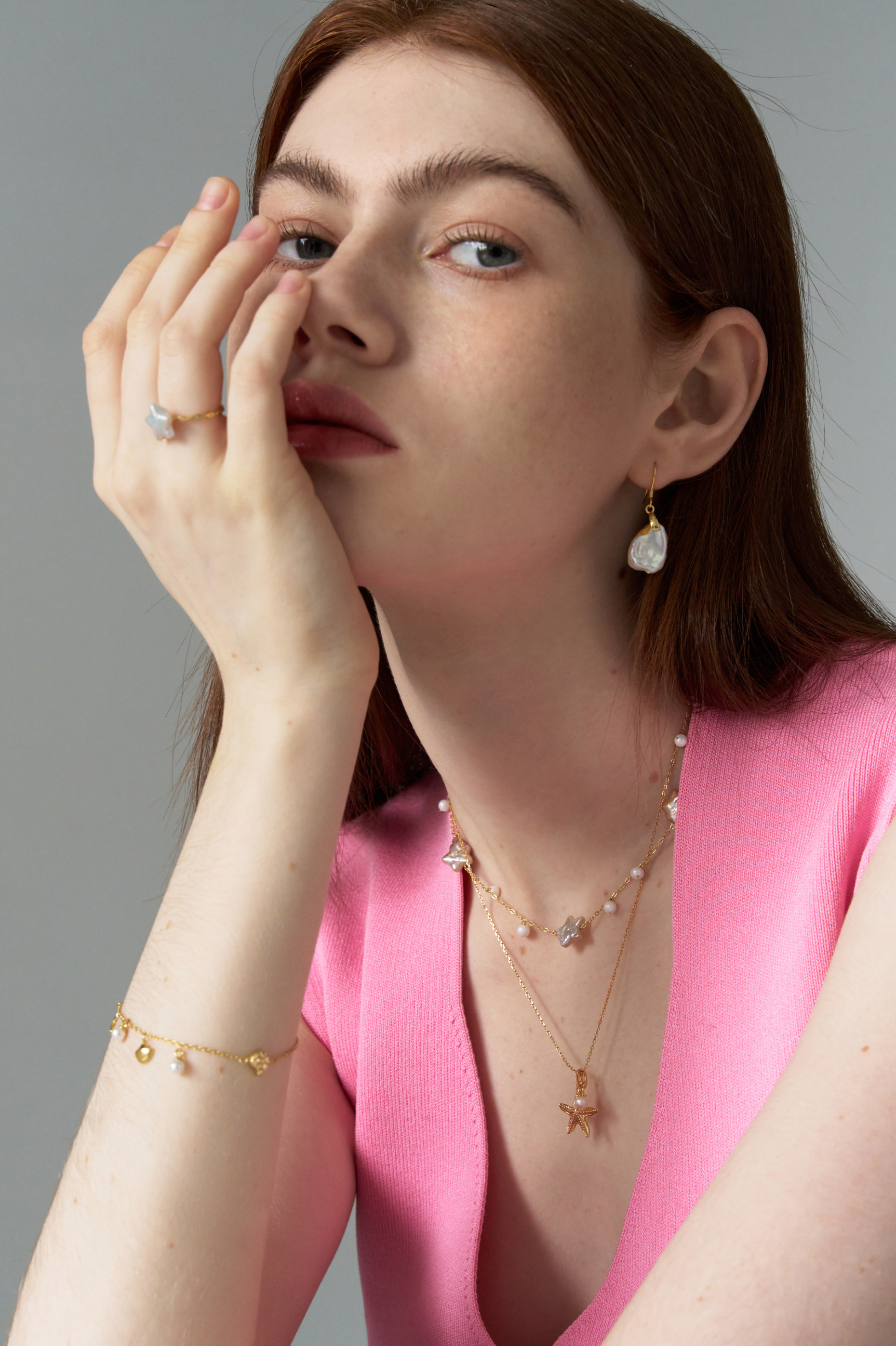 Tiny Starfish Ocean Charm Pearl Bracelet